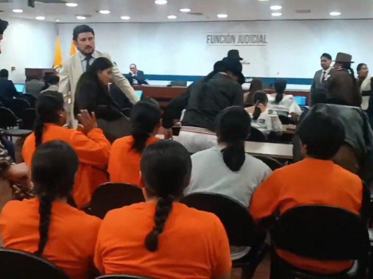 Durante este diálogo intercultural, el juez de la causa solicitó el uso del idioma español en la sala, dado que desconoce el idioma materno de los imputados (kichwa). «Señor juez, debería tener un traductor», le recordó la lideresa de la comunidad.