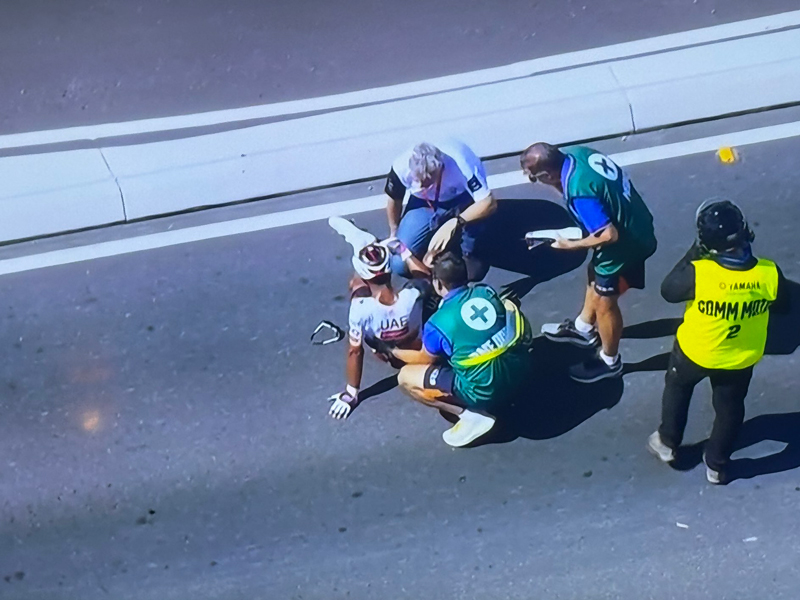 El incidente ocurrió en una autopista donde el pelotón circulaba a alta velocidad. Narváez cayó al asfalto y permaneció consciente, sentado a un costado de la vía, mientras esperaba la llegada de la ambulancia y del personal médico.