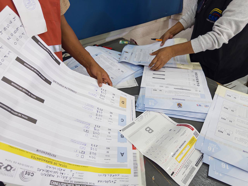 Estos resultados del Referéndum y Consulta Popular 2025 se mantuvieron hasta el cierre de la presente edición, con el 100% de las actas escrutadas. Desde la Dirección Provincial Electoral de Imbabura se expresó que no hubo contratiempos en la Sesión Pública Permanente de Escrutinio y los datos no varían.